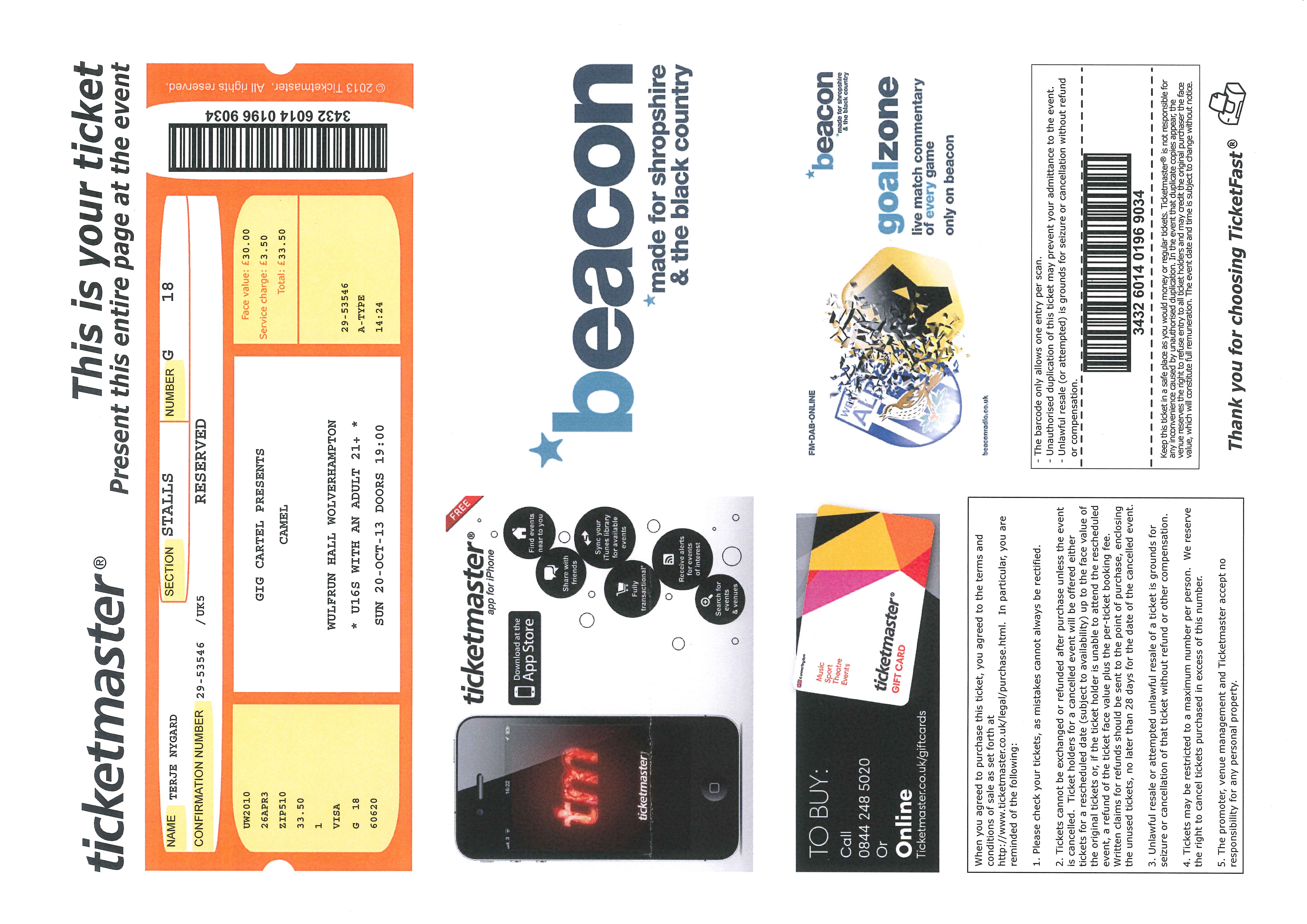 | 20.10.2013 | Camel | Wulfrun Hall | Ticket | jjvdgeer | |||