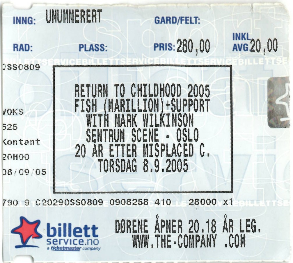 | 08.09.2005 | Fish | Return To Childhood | Sentrum Scene | Ticket | jjvdgeer | ||