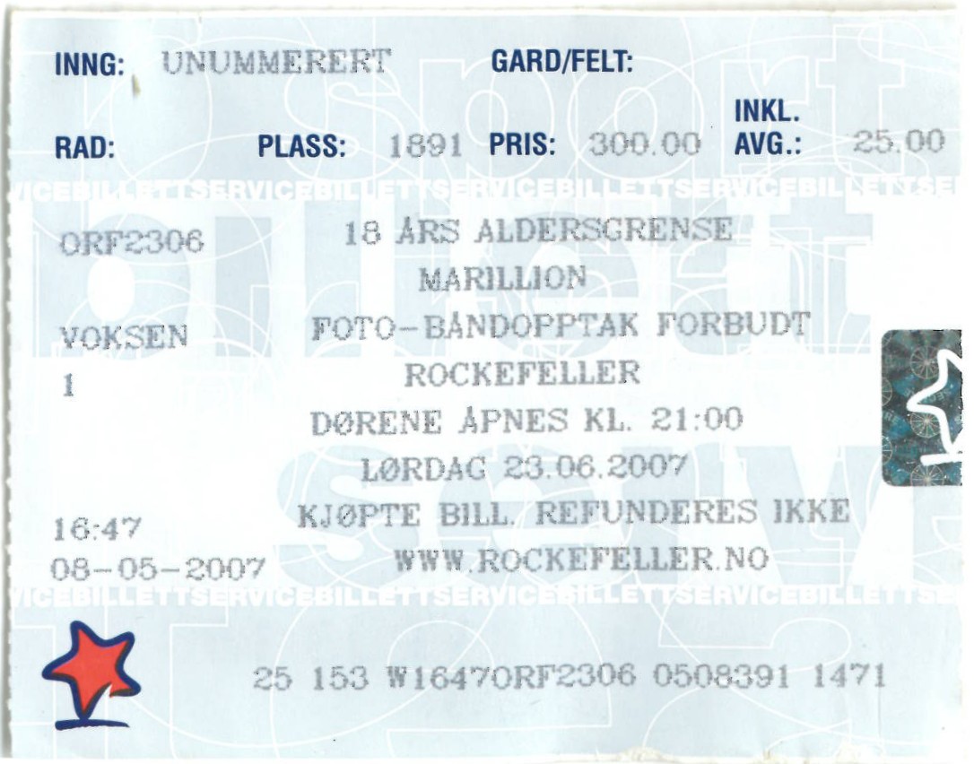 | 23.06.2007 | Marillion + Gazpacho | Rockefeller | Ticket | jjvdgeer | |||