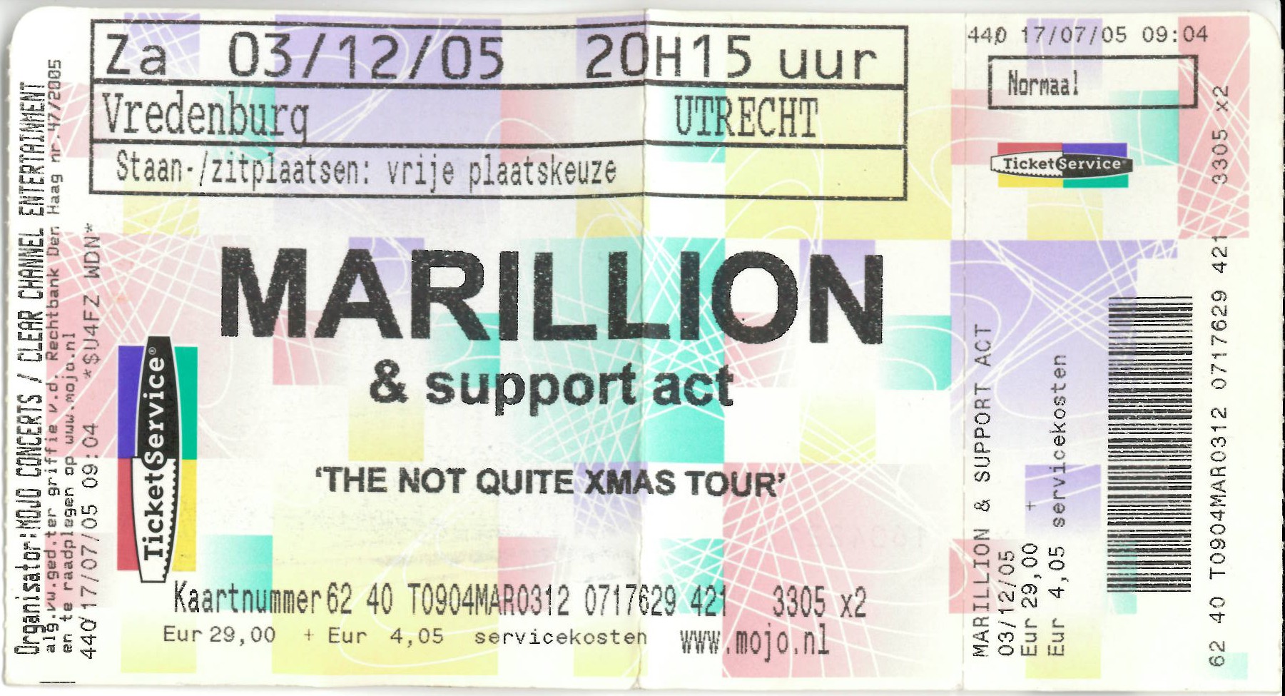 | 03.12.2005 | Marillion + Gazpacho | The Not Quite Xmas Tour | Vredenburg | Ticket | jjvdgeer |