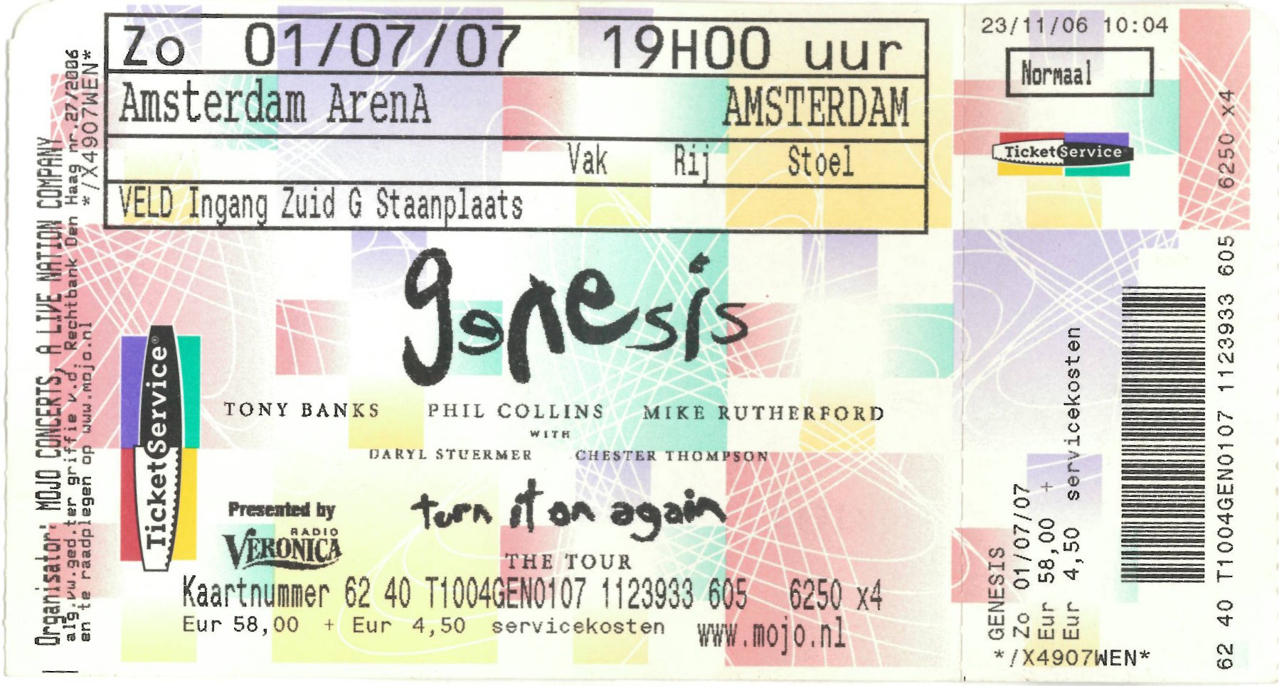 | 01.07.2007 | Genesis | Turn It On Again | Amsterdam ArenA | Ticket | jjvdgeer | ||