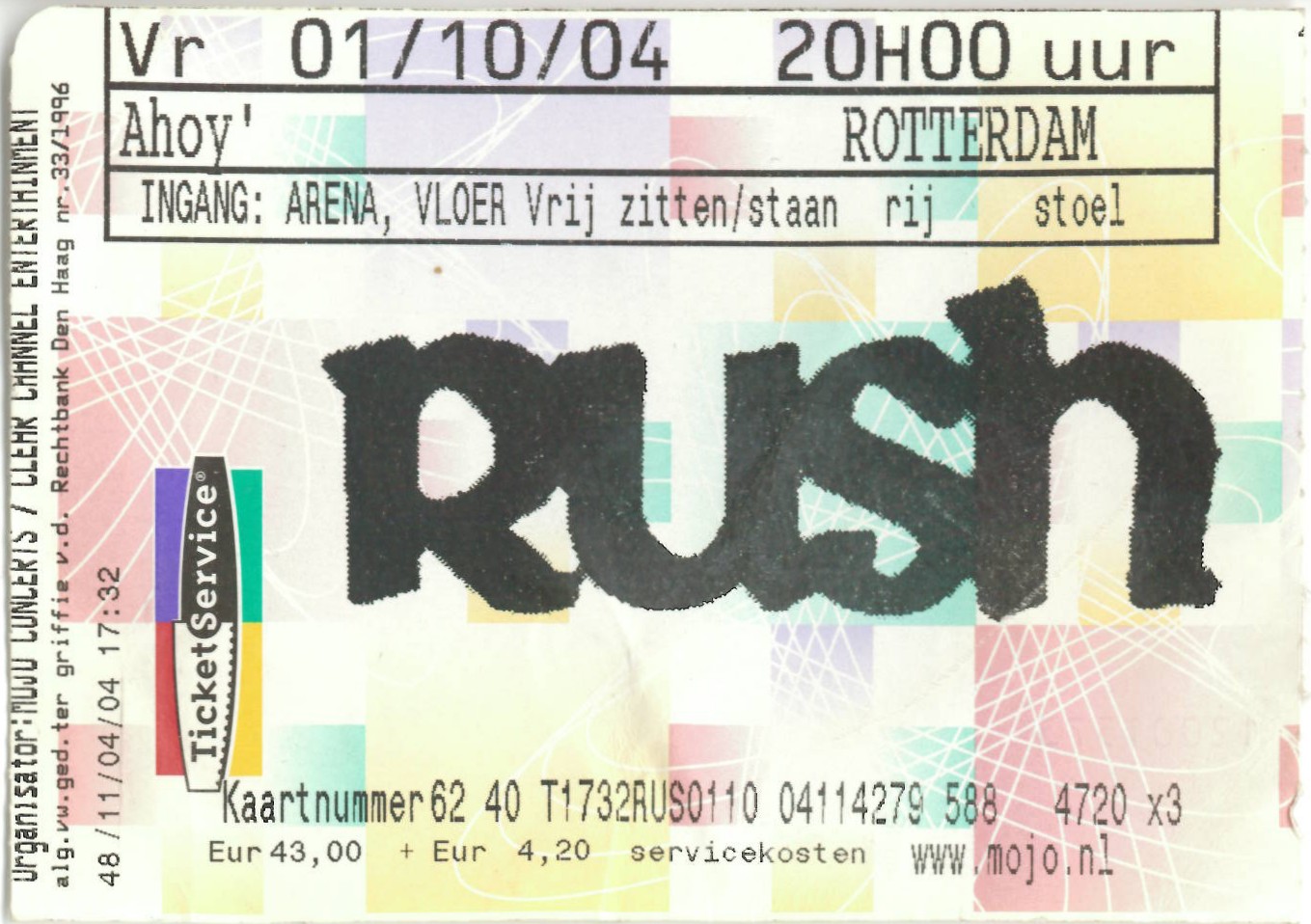 | 01.10.2004 | Rush | Ahoy | Ticket | jjvdgeer | |||
