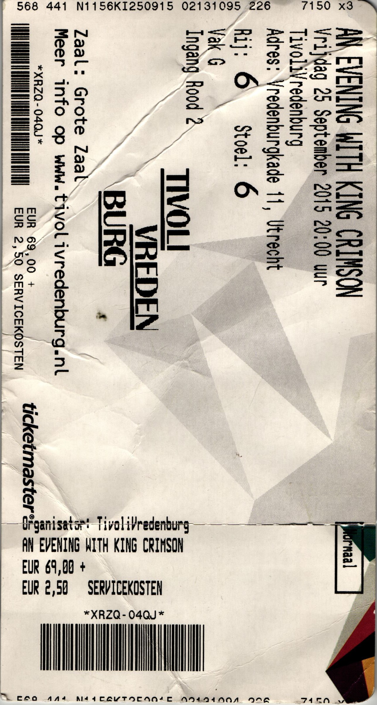 | 25.09.2015 | King Crimson | Vredenburg | Ticket | jjvdgeer | |||