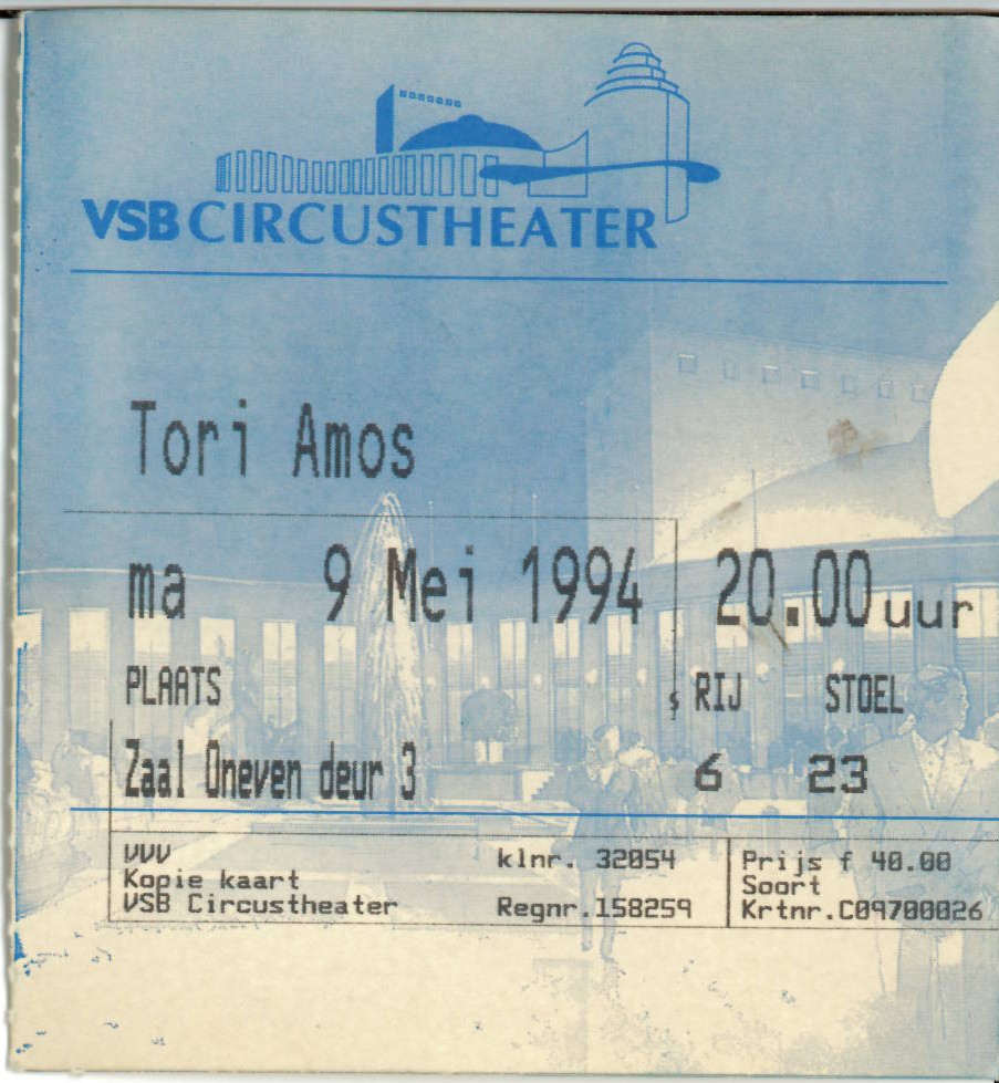 | 09.05.1994 | Tori Amos | Circustheater | Ticket | jjvdgeer | |||