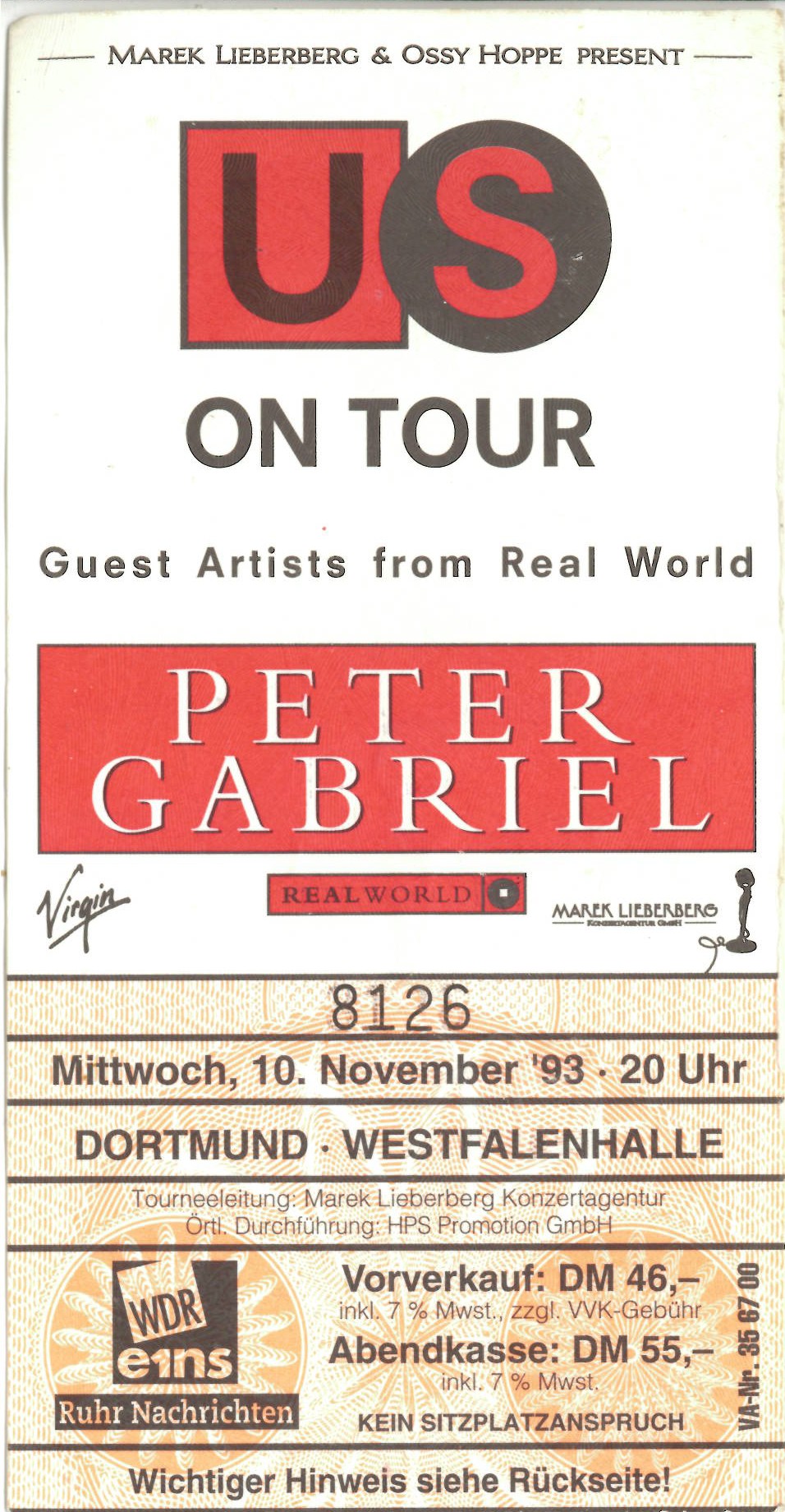 | 10.11.1993 | Peter Gabriel | US On Tour | Westfalenhallen | Ticket | jjvdgeer | ||