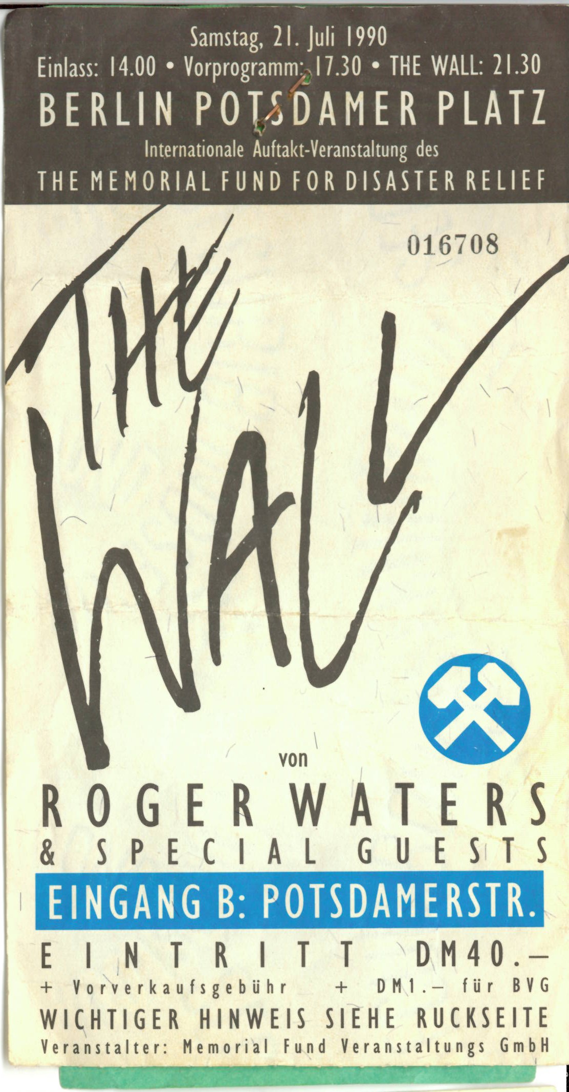 21.07.1990 Roger Waters The Wall Potsdamer Platz Ticket jjvdgeer