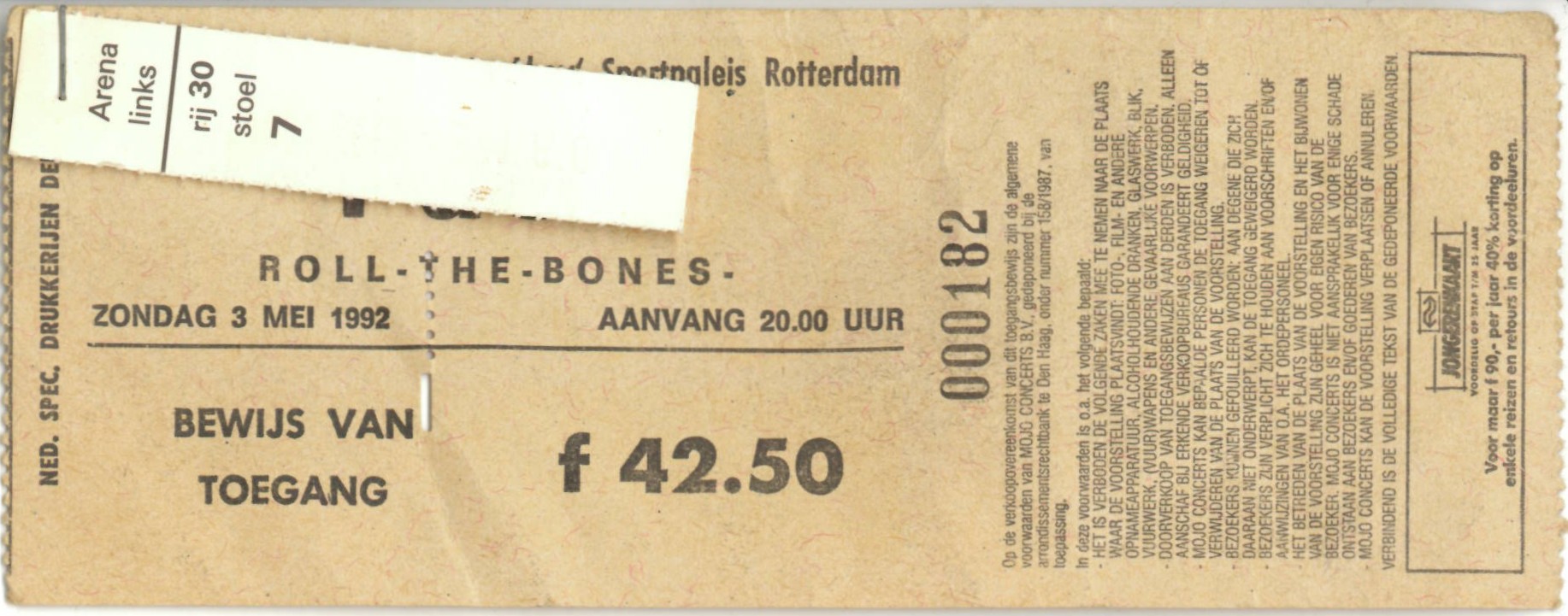 03.05.1992 Rush Roll the Bones Ahoy Ticket jjvdgeer