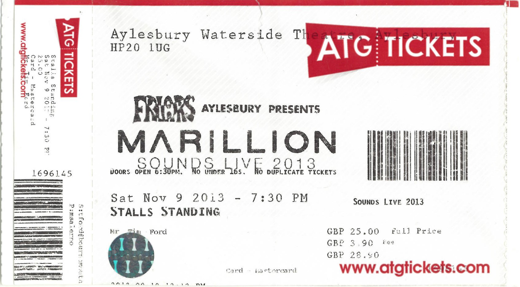 | 09.11.2013 | Marillion | Waterside Theatre | Ticket | jjvdgeer | |||
