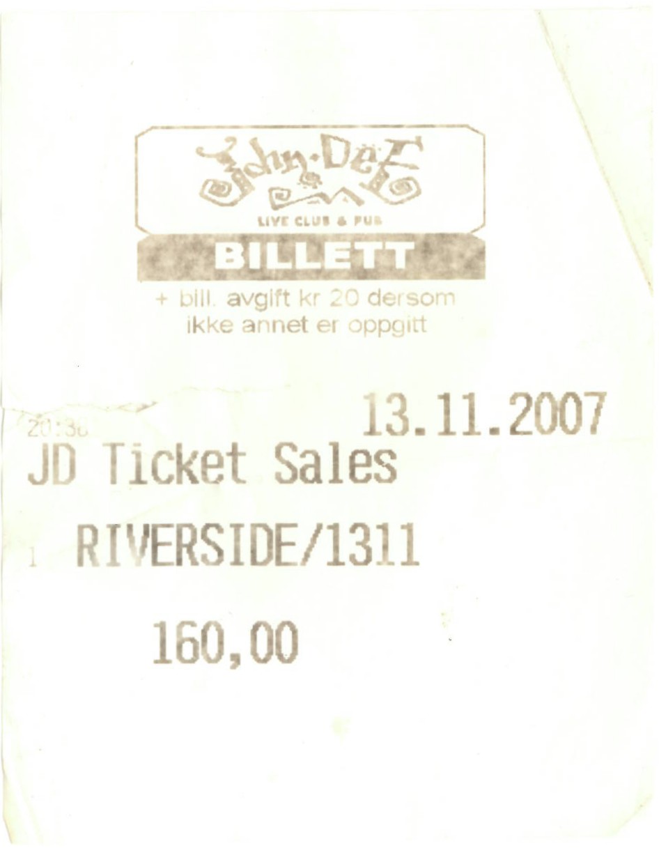 | 13.11.2007 | Riverside | John Dee | Ticket | jjvdgeer | |||