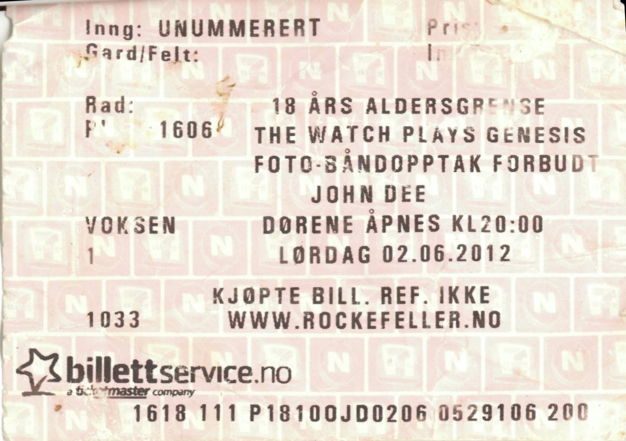 | 02.06.2012 | The Watch | Plays Genesis | John Dee | Ticket | jjvdgeer | ||