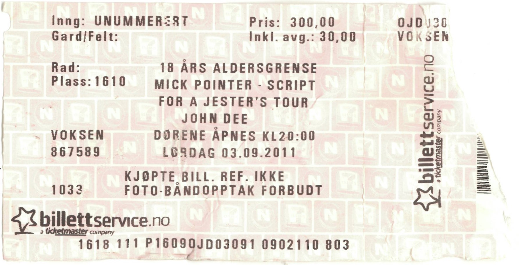 | 03.09.2011 | Mick Pointer's Marillion | Script For A Jester's Tour | John Dee | Ticket | jjvdgeer | ||