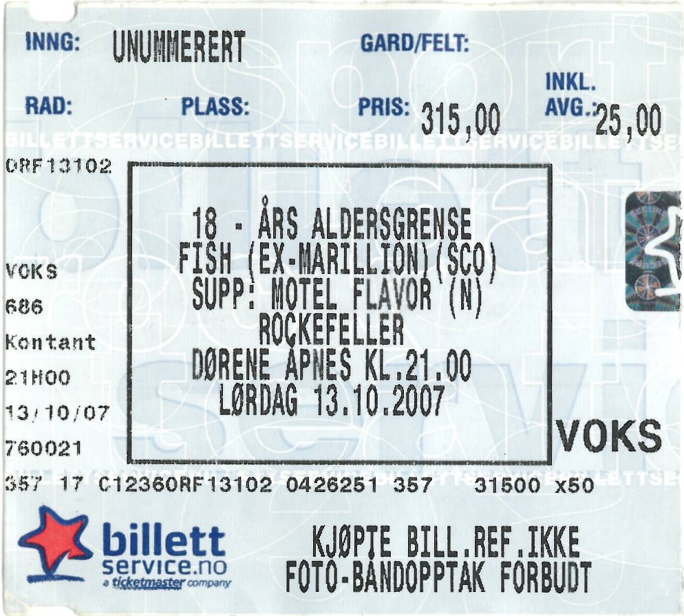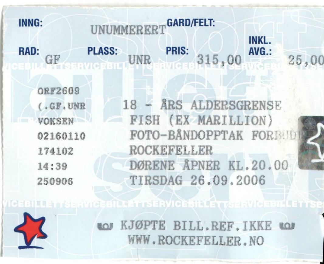 | 06.09.2005 | Fish | Return To Childhood | Rockefeller | Ticket | jjvdgeer |