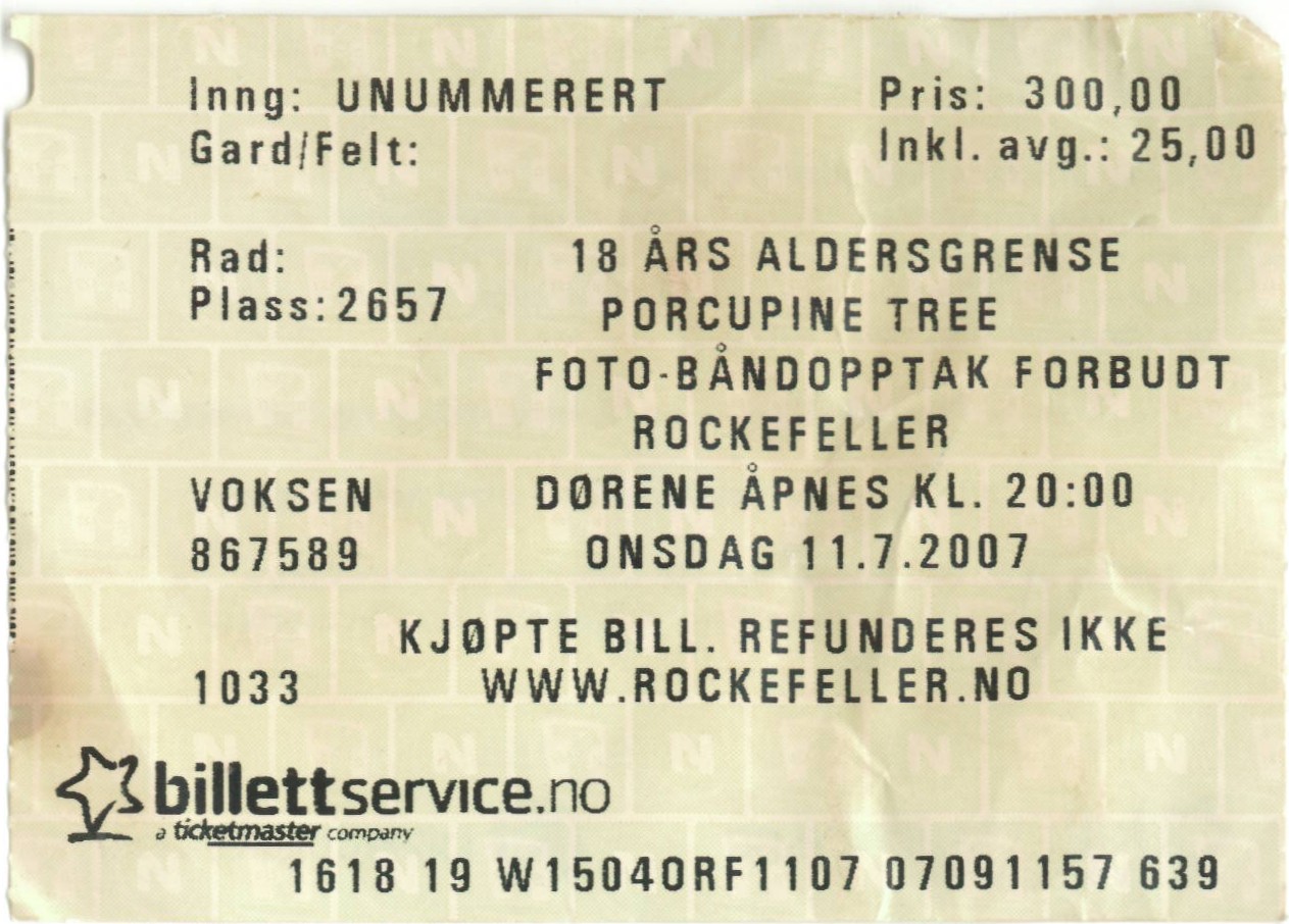 | 11.07.2007 | Porcupine Tree | Pure Reason Revolution | Rockefeller | Ticket | jjvdgeer | ||